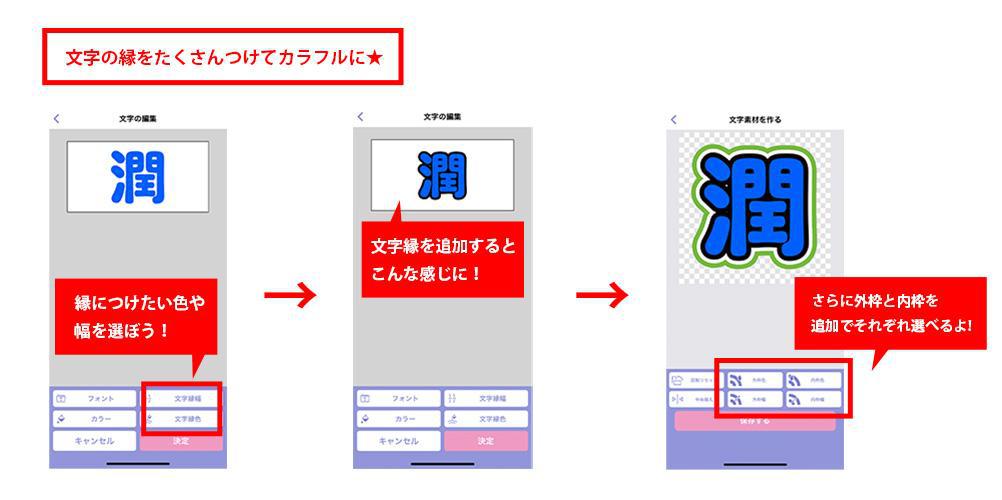 フォントやカラーがたくさんあるのはもちろん、文字の縁も沢山つけられるので作るのがとても楽しかったです!