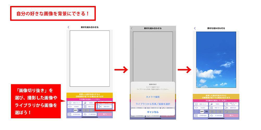 その場で撮った写真や、自分の持っている画像を背景にすることもできます!