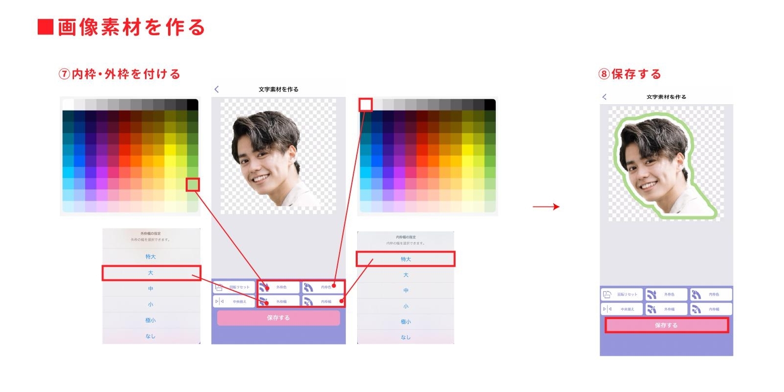 最後に内枠色と幅を設定し、「保存する」ボタンをタップします。