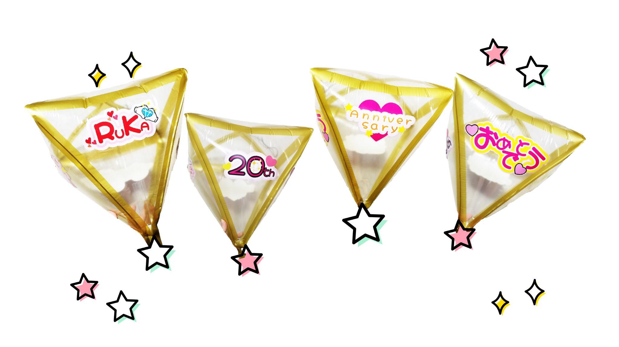 ダイヤモンド形のバルーンの、4面あるそれぞれの面に名前やメッセージを入れてみました!