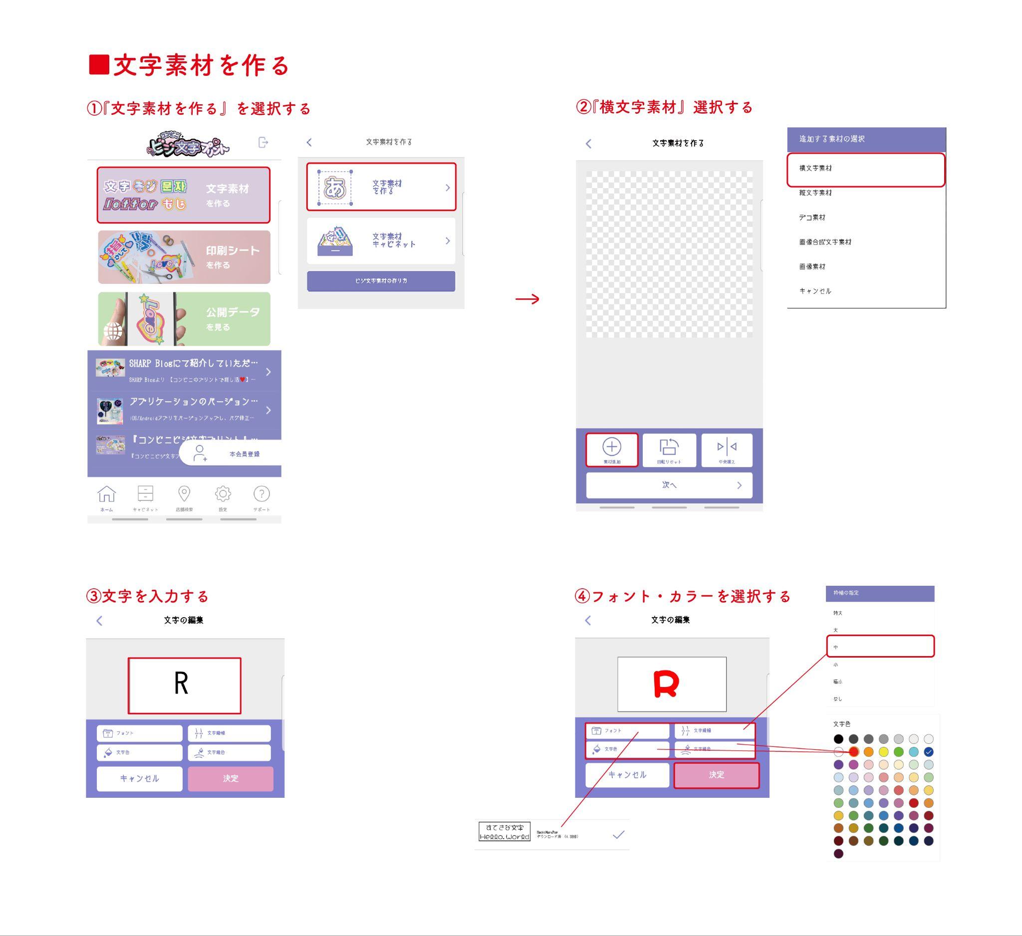 アプリトップ画面の『文字素材を作る』→『文字素材を作る』