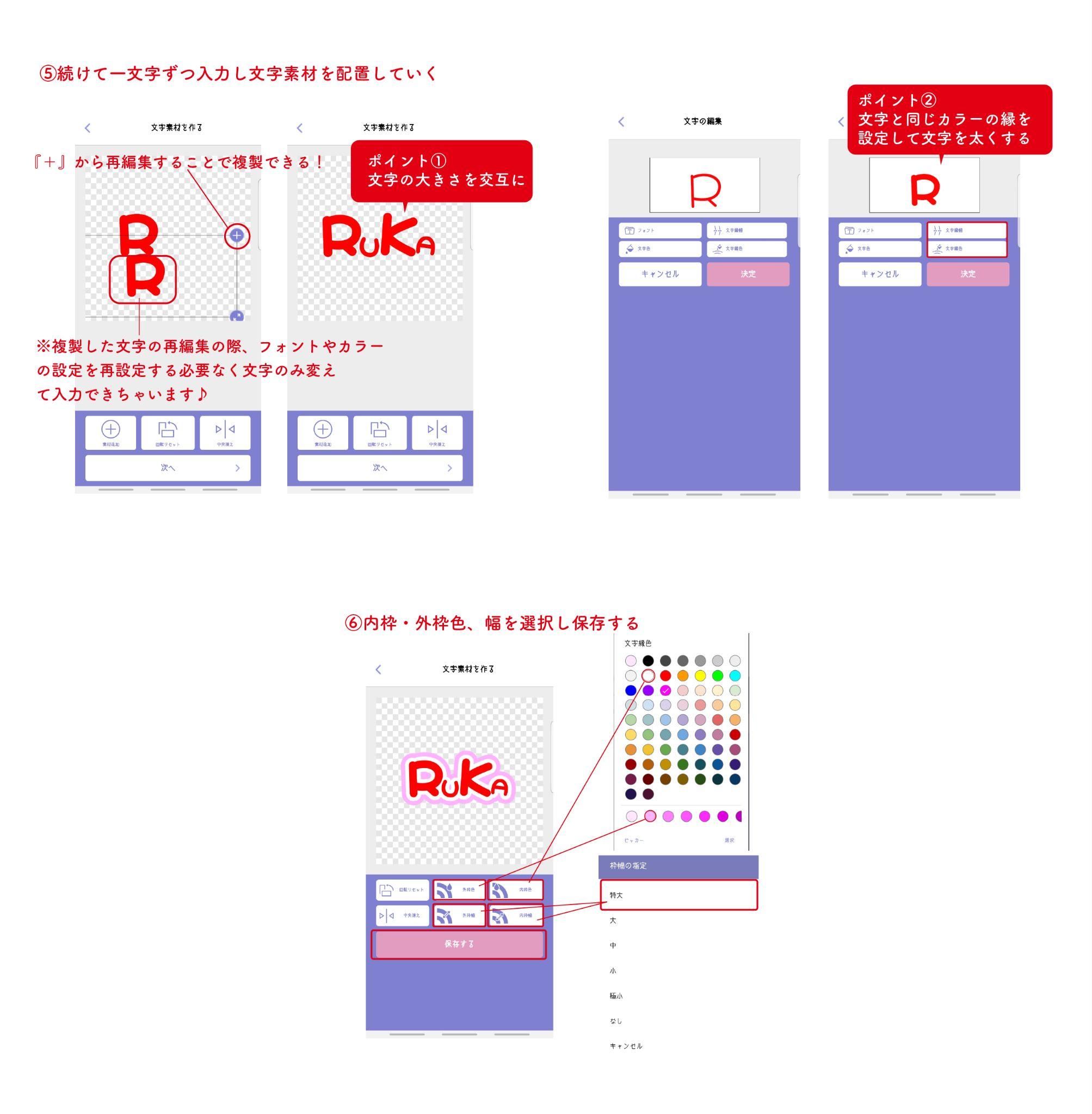 今回は文字素材のカラーリングに合わせて、それぞれ違う枠線にしてみました!
