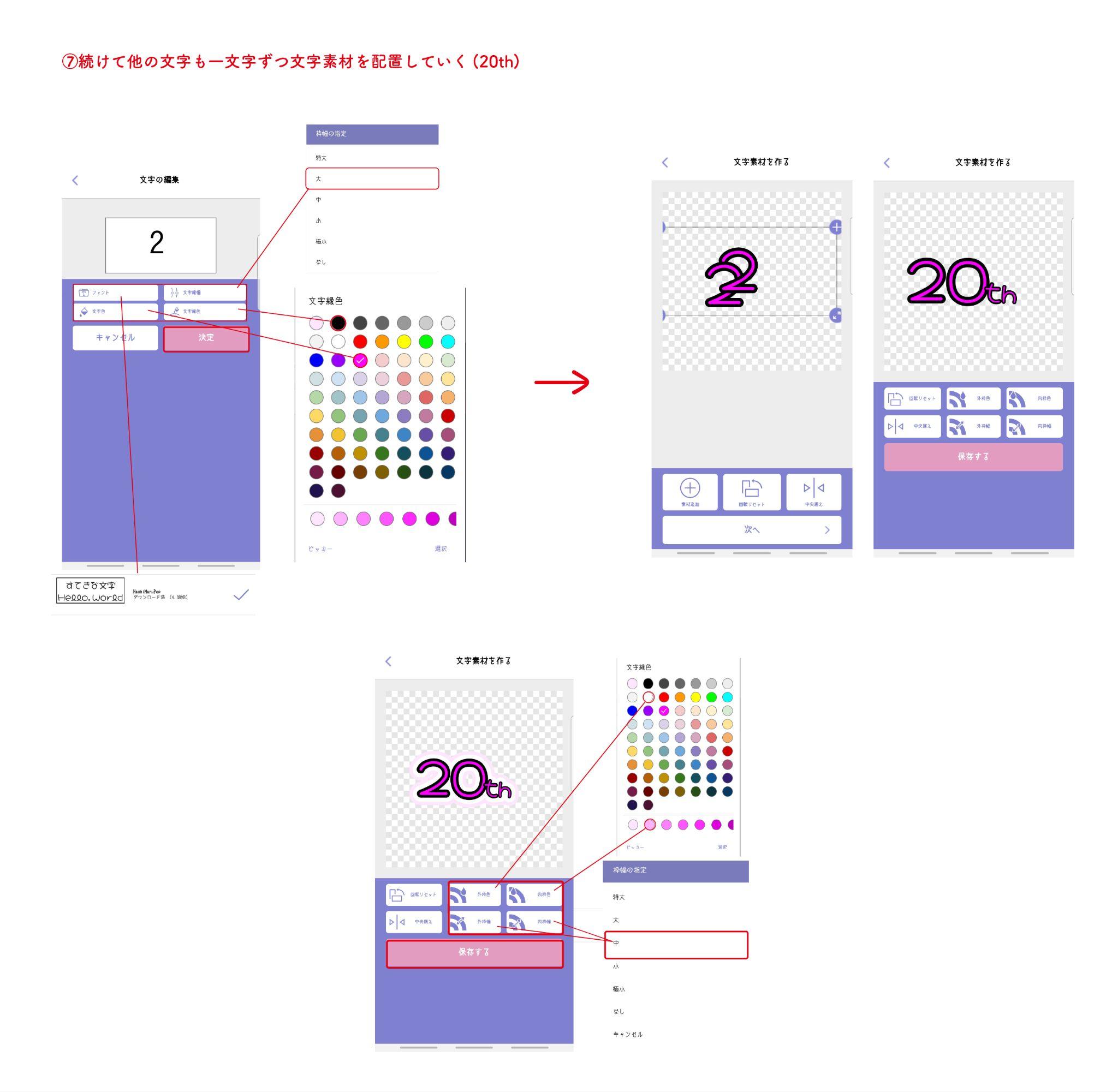 他の文字素材の『20th』『Anniversary』『おめでとう』にも同じ要領で装飾していきます♪