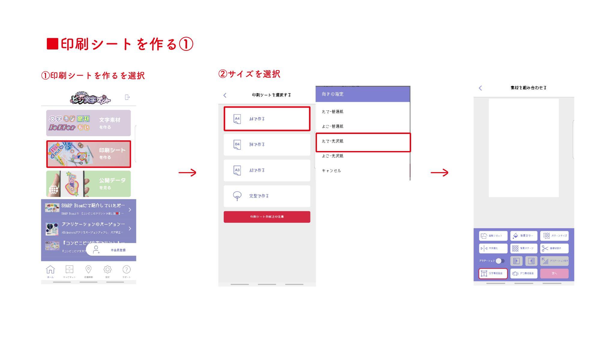 アプリのトップ画面から『印刷シートを作る』→『A4で作る』を選択。
