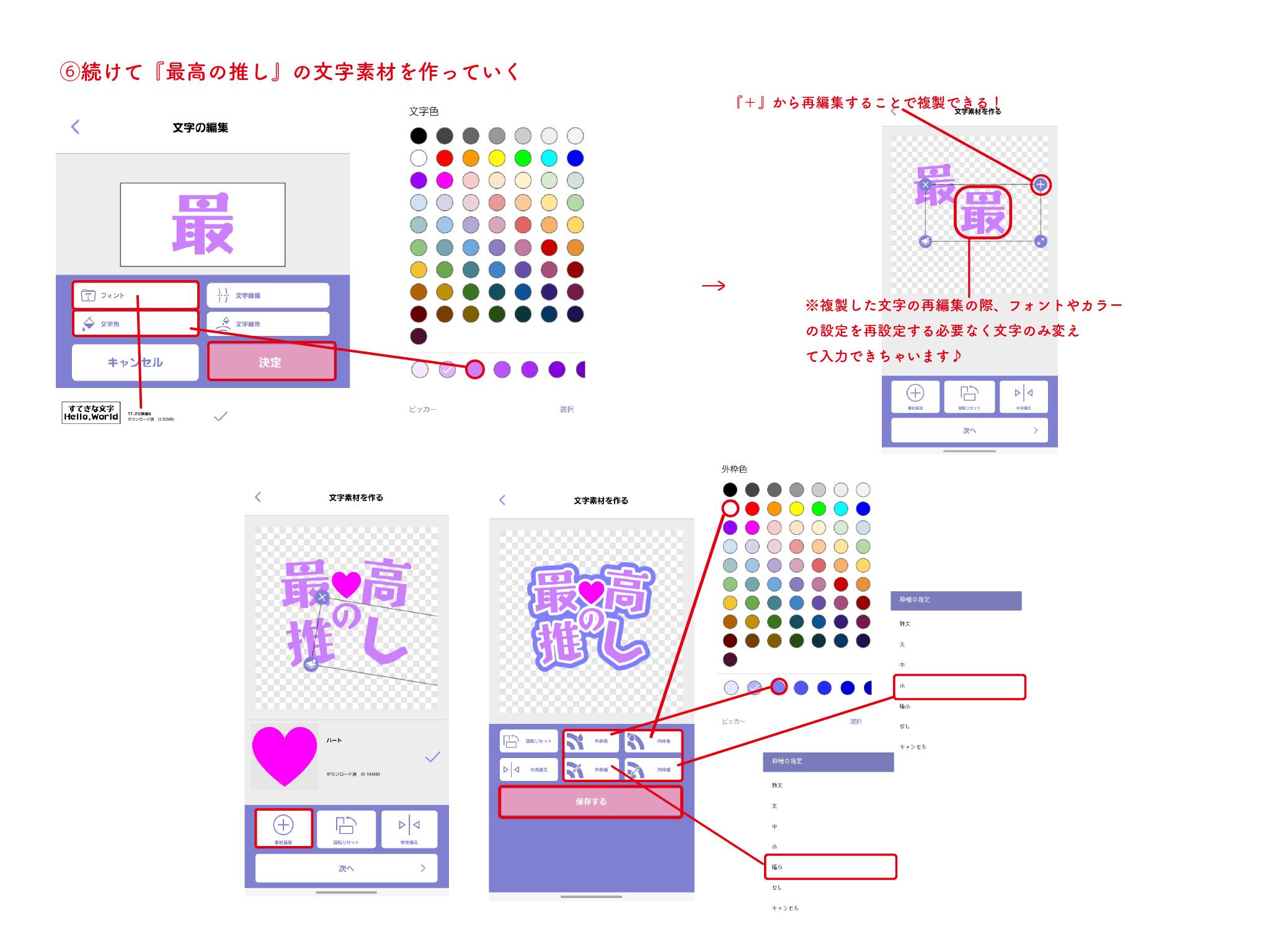続けて、『最♡高の推し』の文字素材も同じ要領で作っていきます。