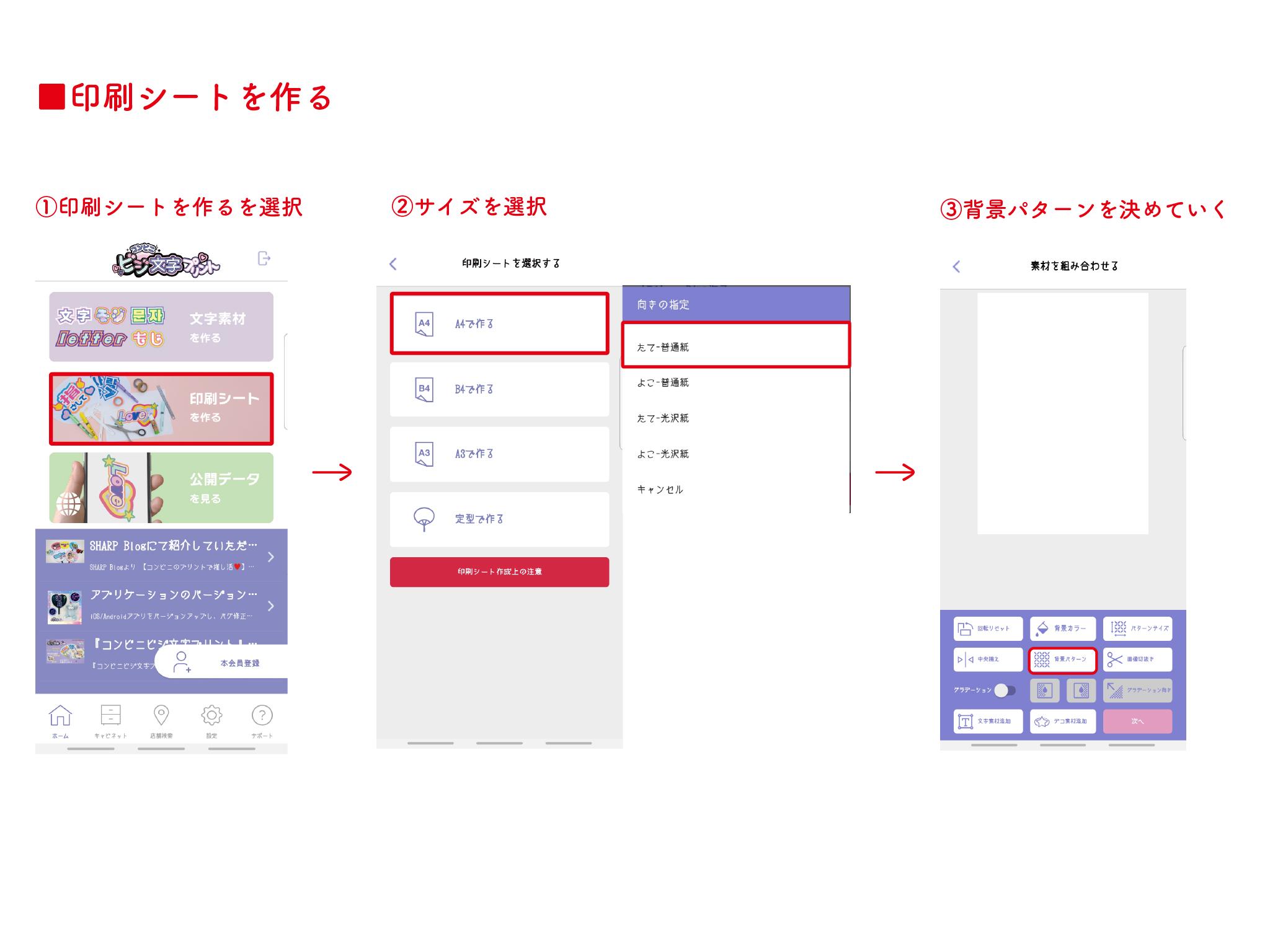 アプリのトップ画面から『印刷シートを作る』→『A4で作る』を選択。
