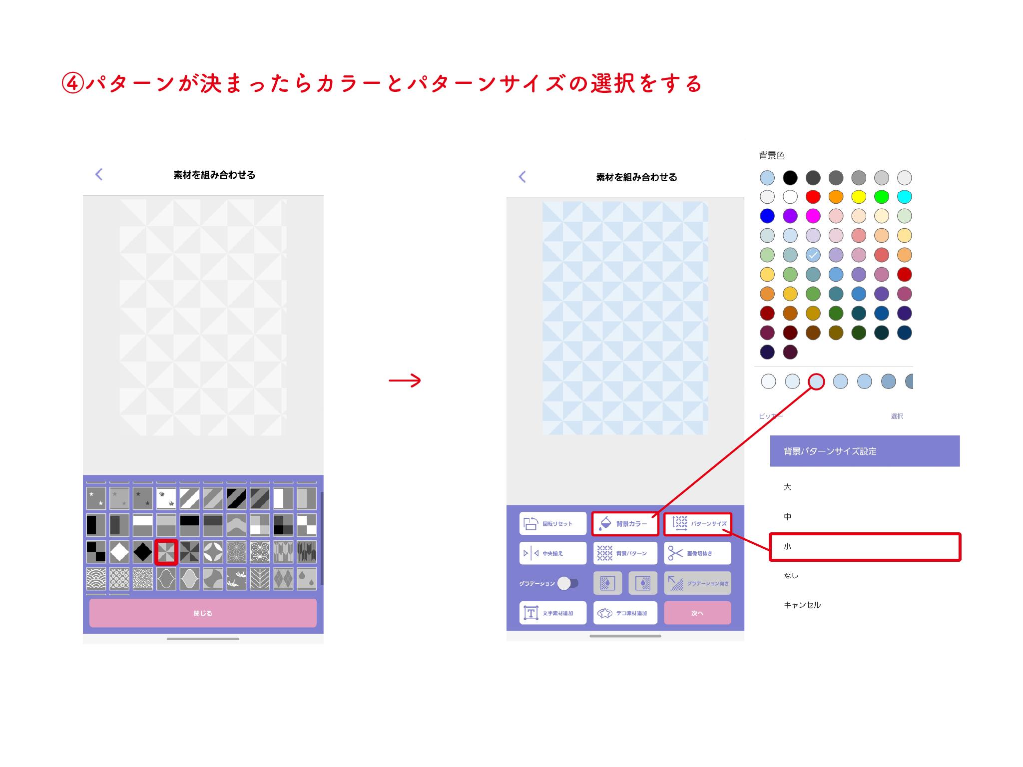 少し柄のサイズが大きいなと思ったので、パターンサイズで柄のサイズを変更していきます。私は『小』を選びました(^^)