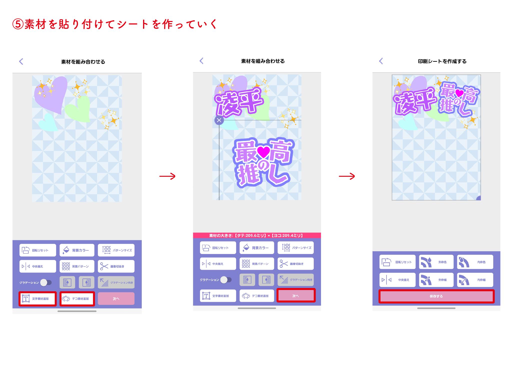 名前の『凌平』と推しへのメッセージ『最♡高の推し』の2種類の文字素材を作っていきます!