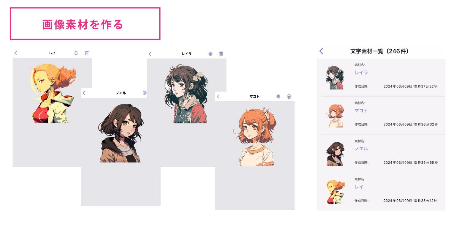 こんな感じでキャラクター全て『画像素材』として登録していこう(๑>◡<๑)
