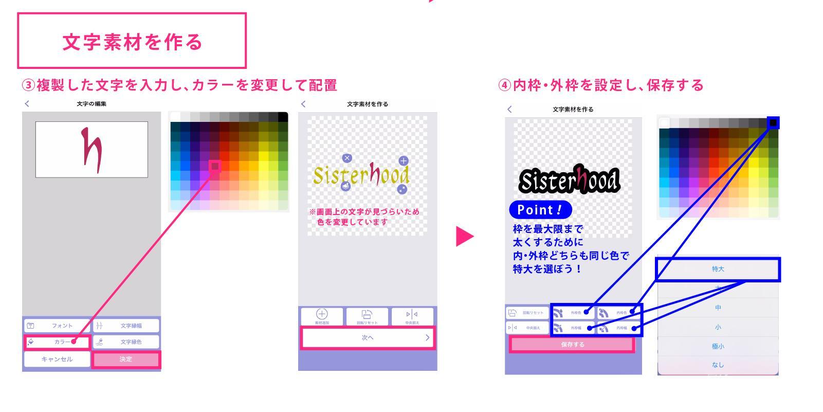 内枠と外枠を設定したら『保存する』をタップして、文字素材はこちらで完了〜!
