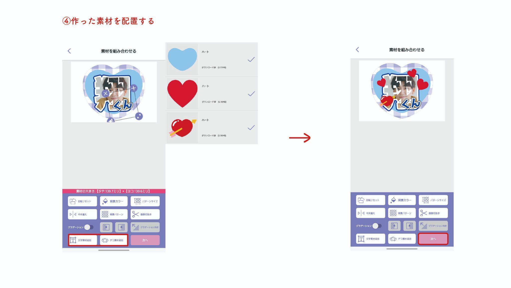 次に、作った素材、デコ素材を配置していきます。