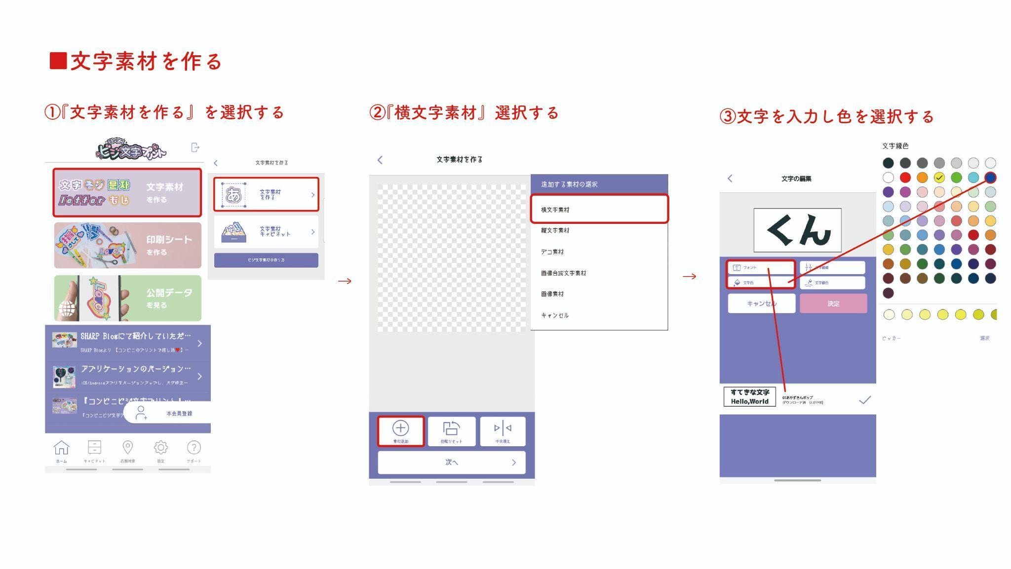 アプリトップ画面の『文字素材を作る』→『文字素材を作る』
