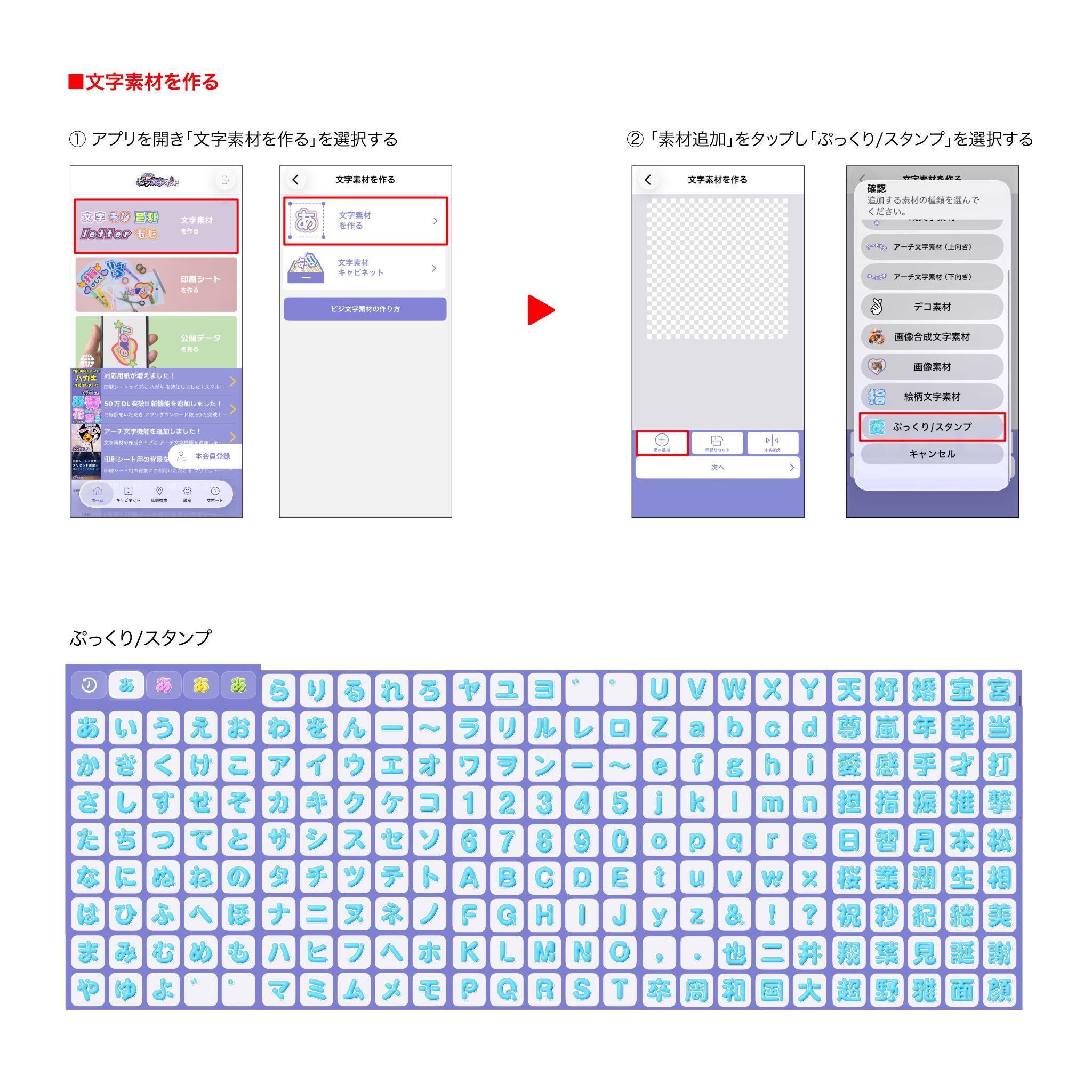 この「ぷっくり文字」は文字を加工するのではなくスタンプと同じ使い方をします♪