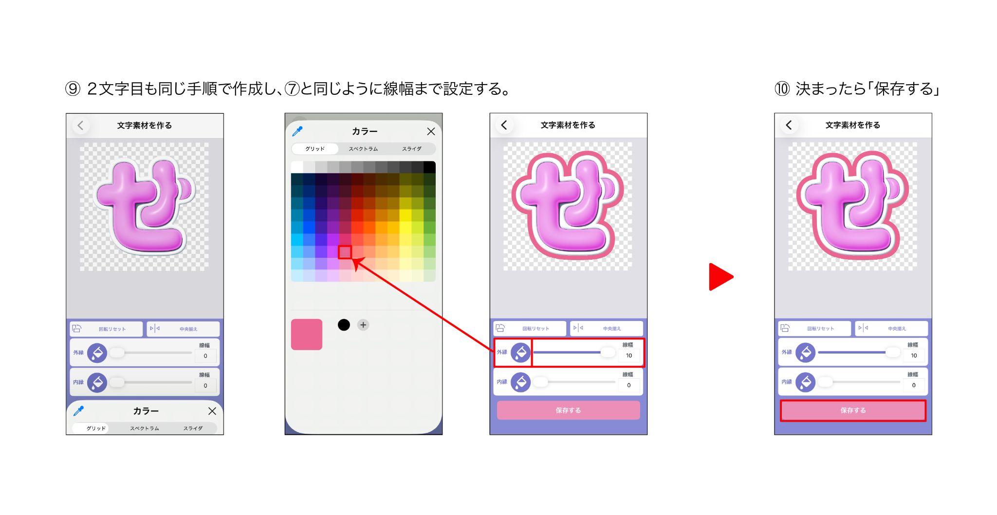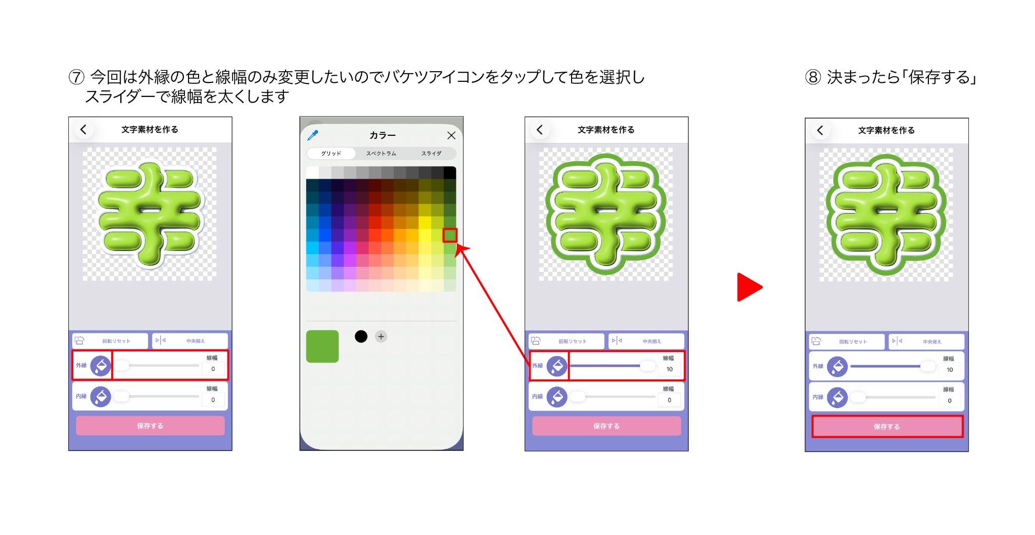 外縁の色と線幅を決めたら『保存する』をタップして名前をつけて保存します。