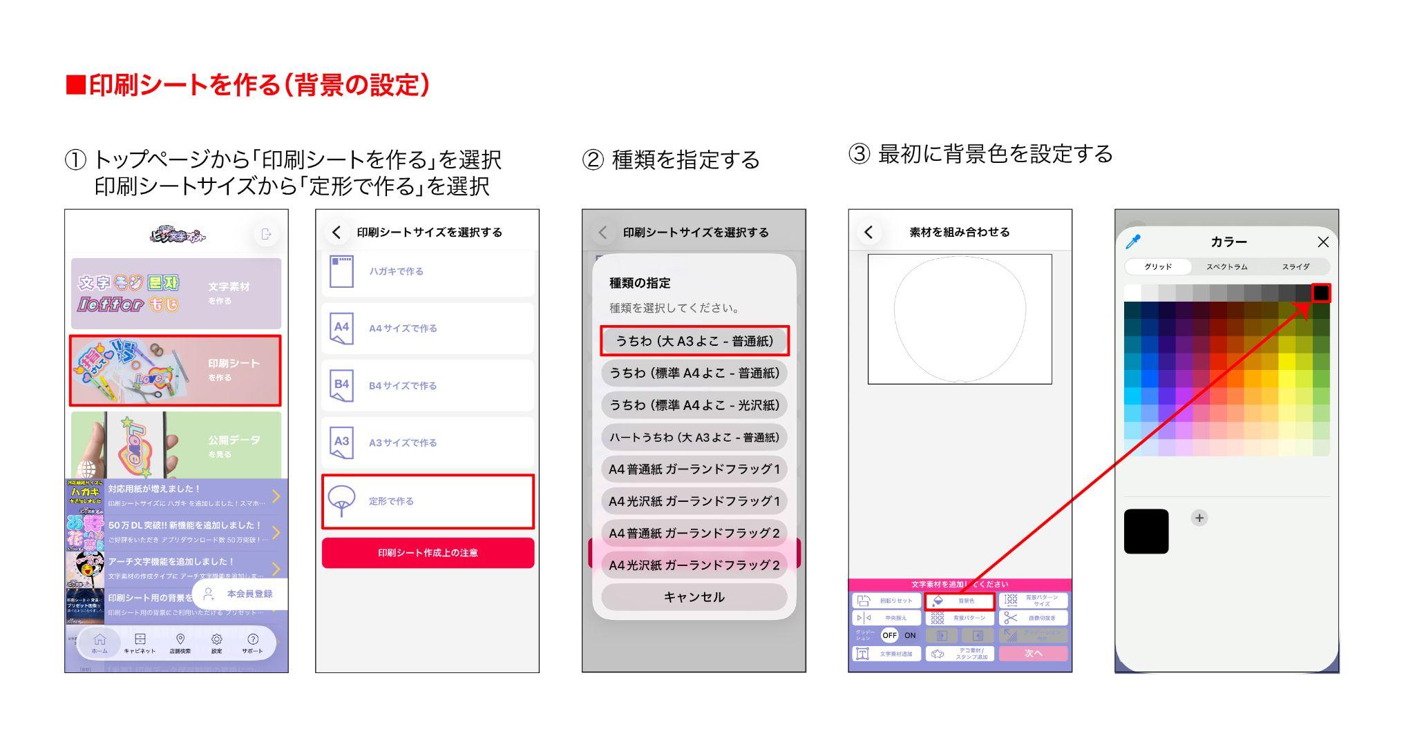 印刷シートの作り方(背景の設定と素材の配置)