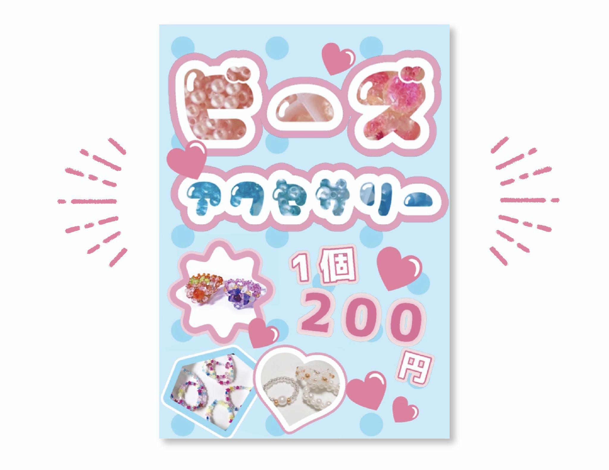 メインの品目、「ビーズアクセサリー」は、【画像合成文字素材】で作成!