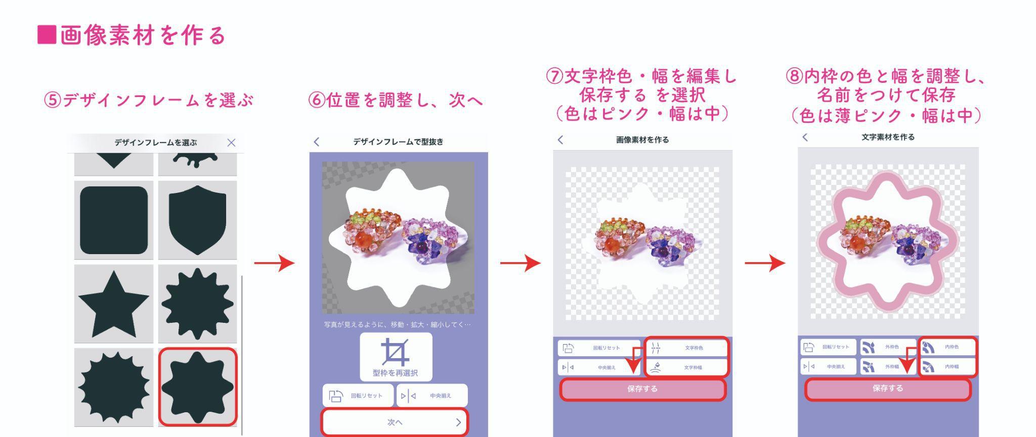 保存後、フレームを変えて 他のアクセサリー写真も同様の流れで素材にします◎