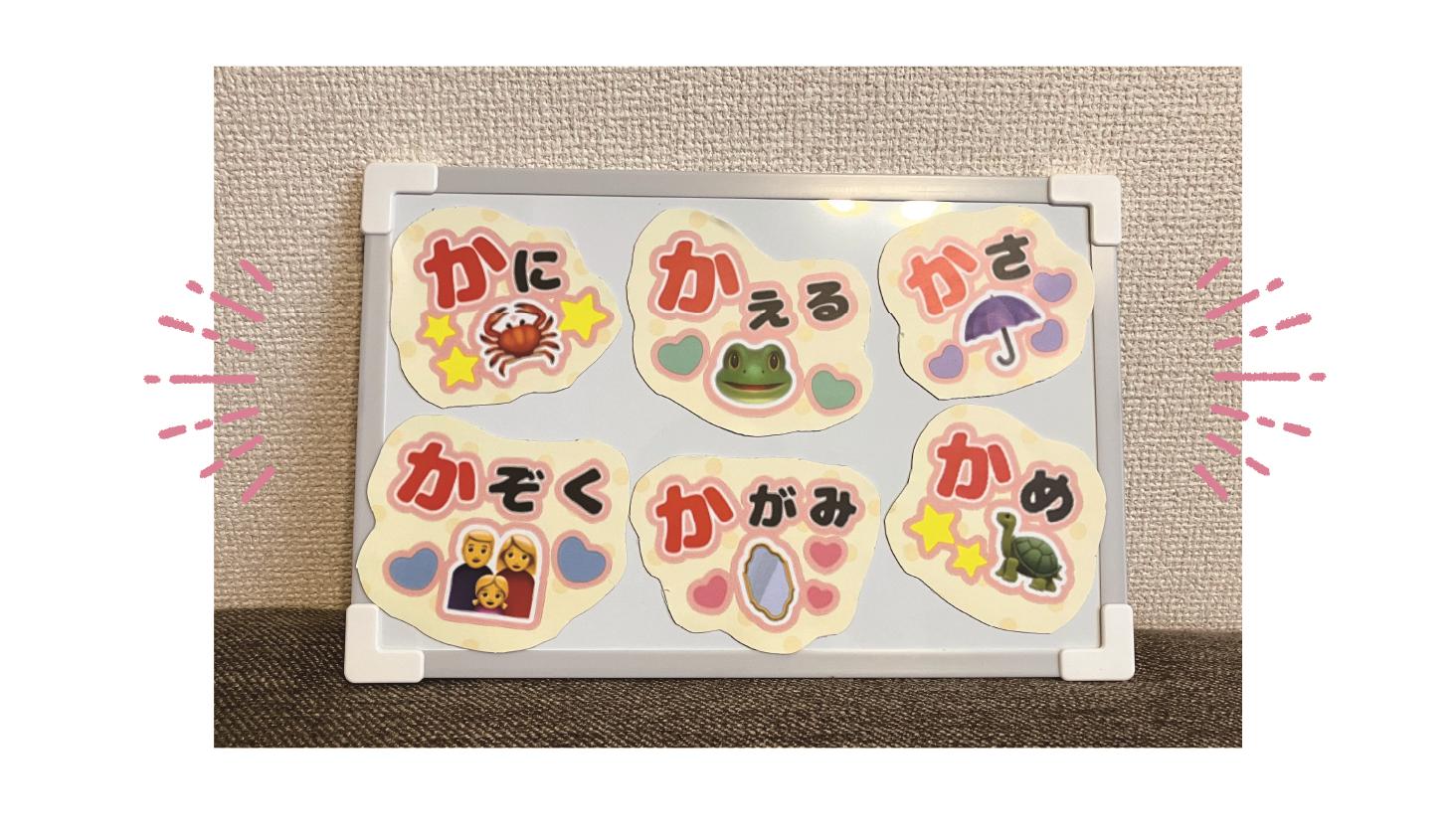 市販のひらがな教材はたくさんありますが、自分の名前のひらがなを使ったオリジナルのマグネットならより興味をもって楽しく覚えられそうだなー、と思います◎