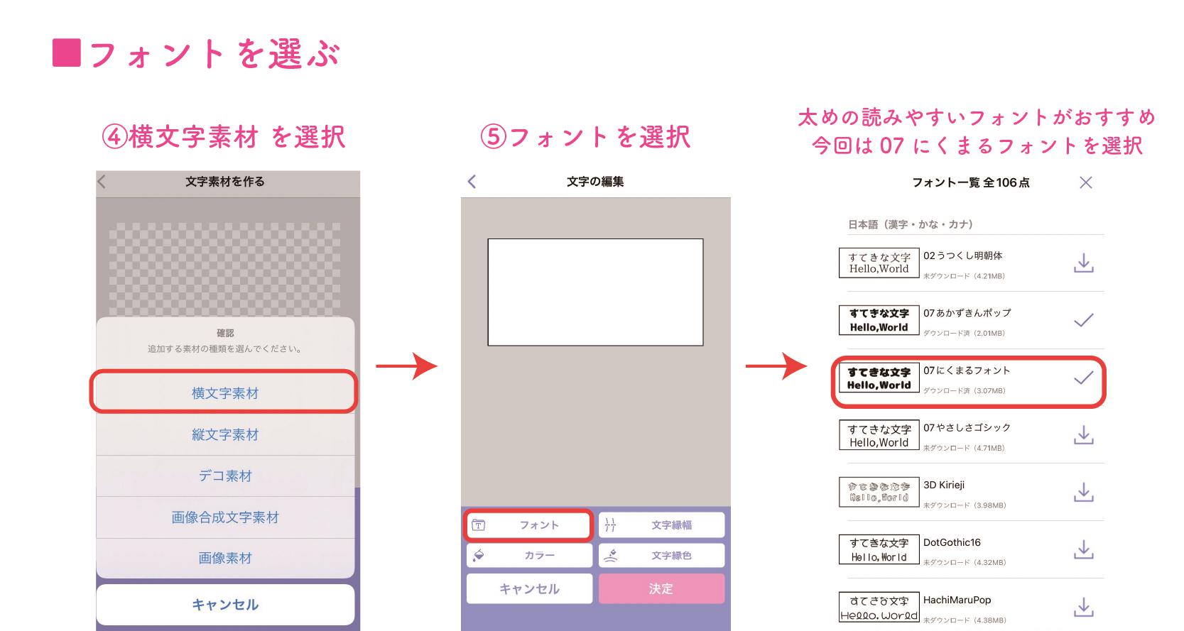 基本の「横文字素材」を使って、シンプルなステップでさくさく作っていきます。
