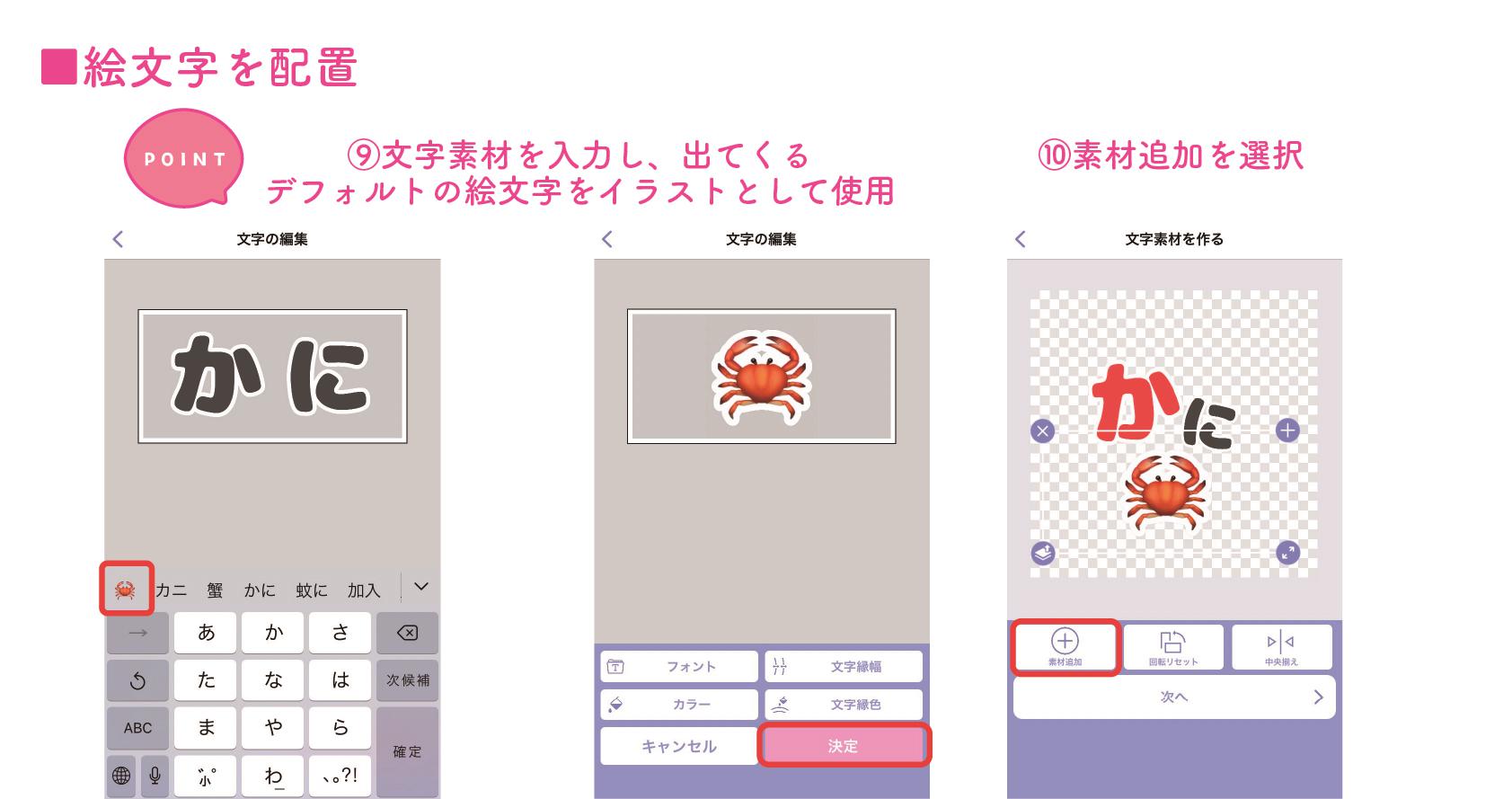 絵文字の周りに、良い感じにデコ素材でにぎやかし。