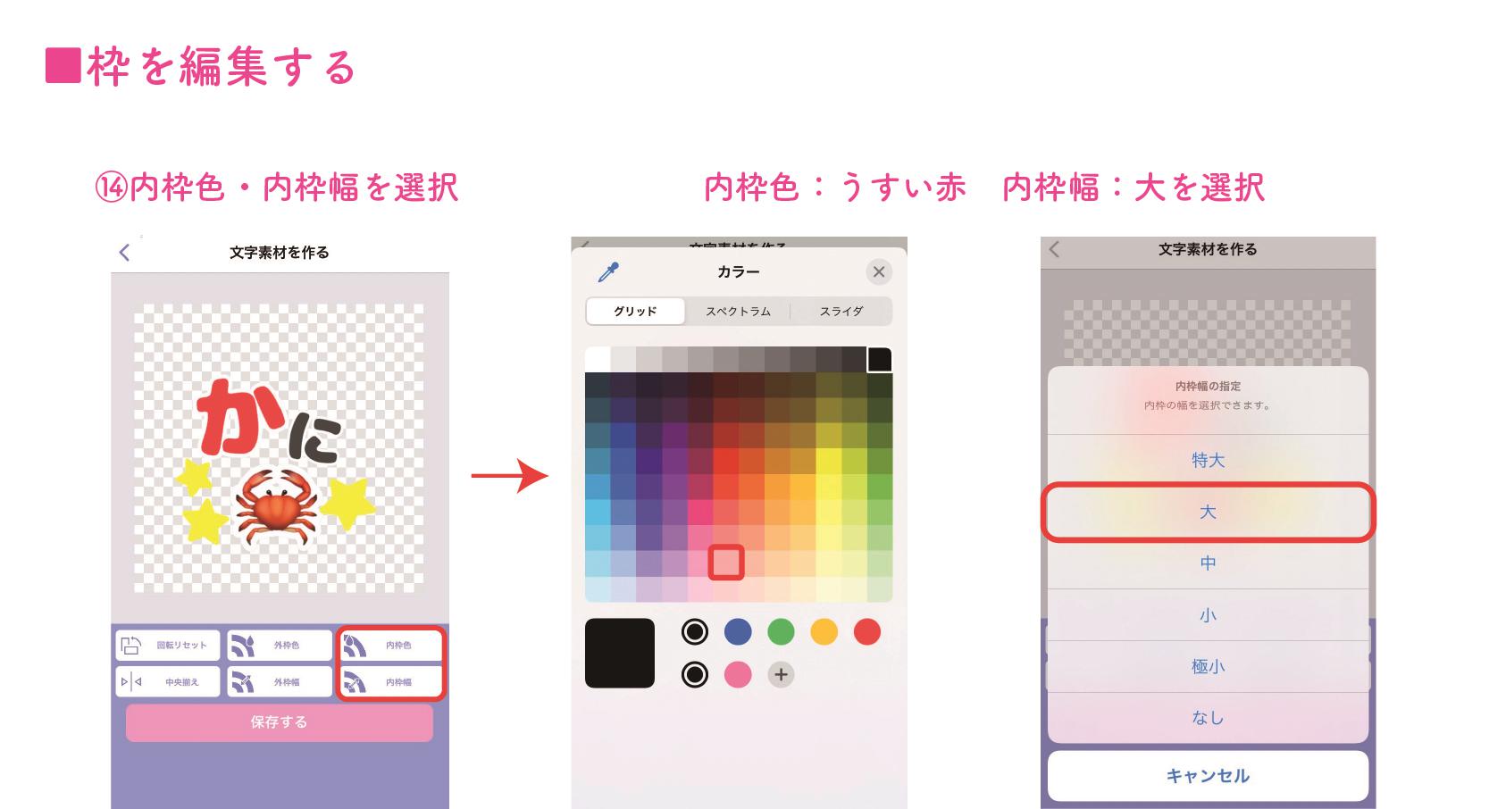 文字と文字枠のカラー・幅も選んでいきましょう。
