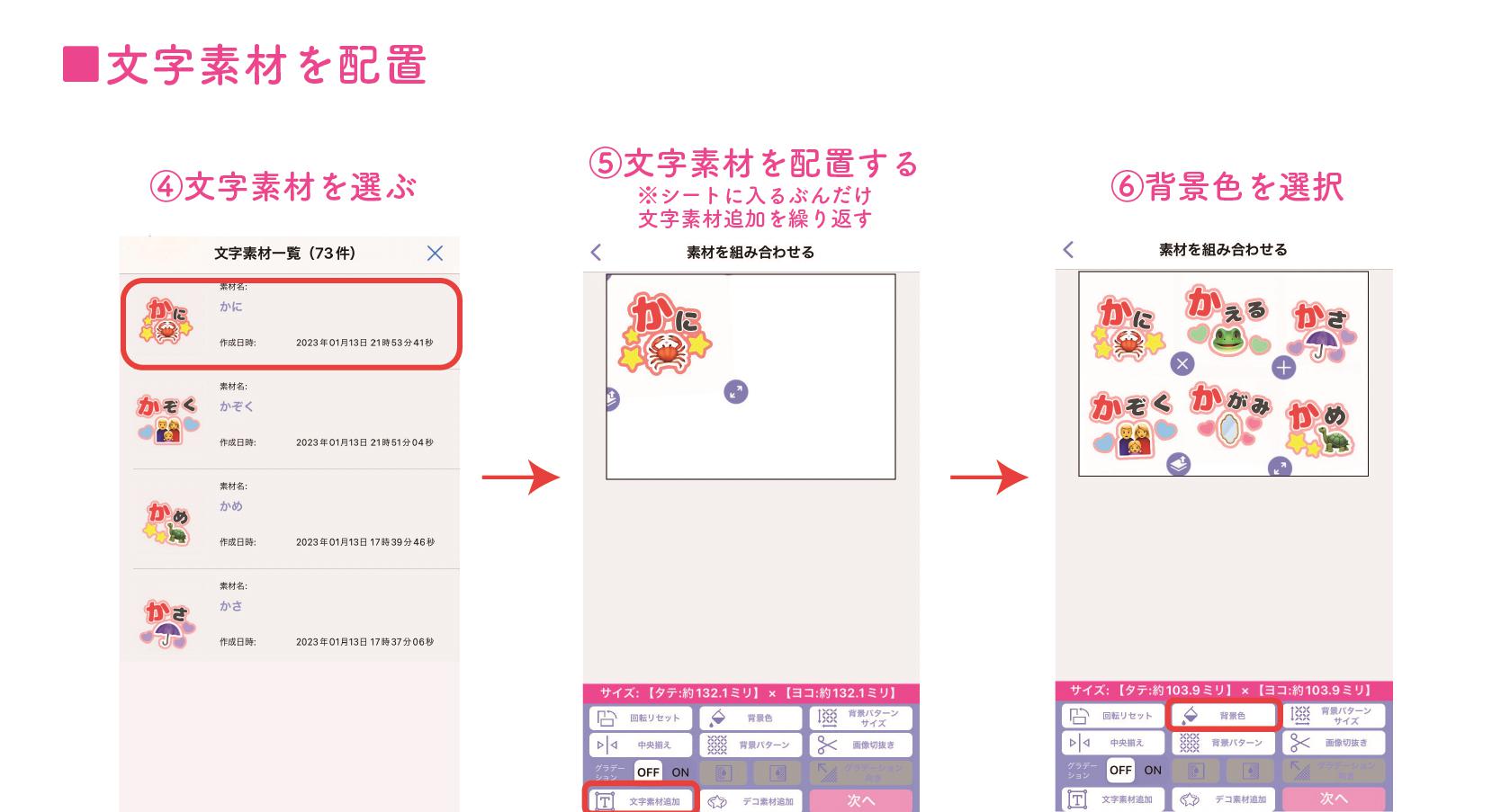 6種類のひらがな素材を自由にレイアウトしていきますよ~!
