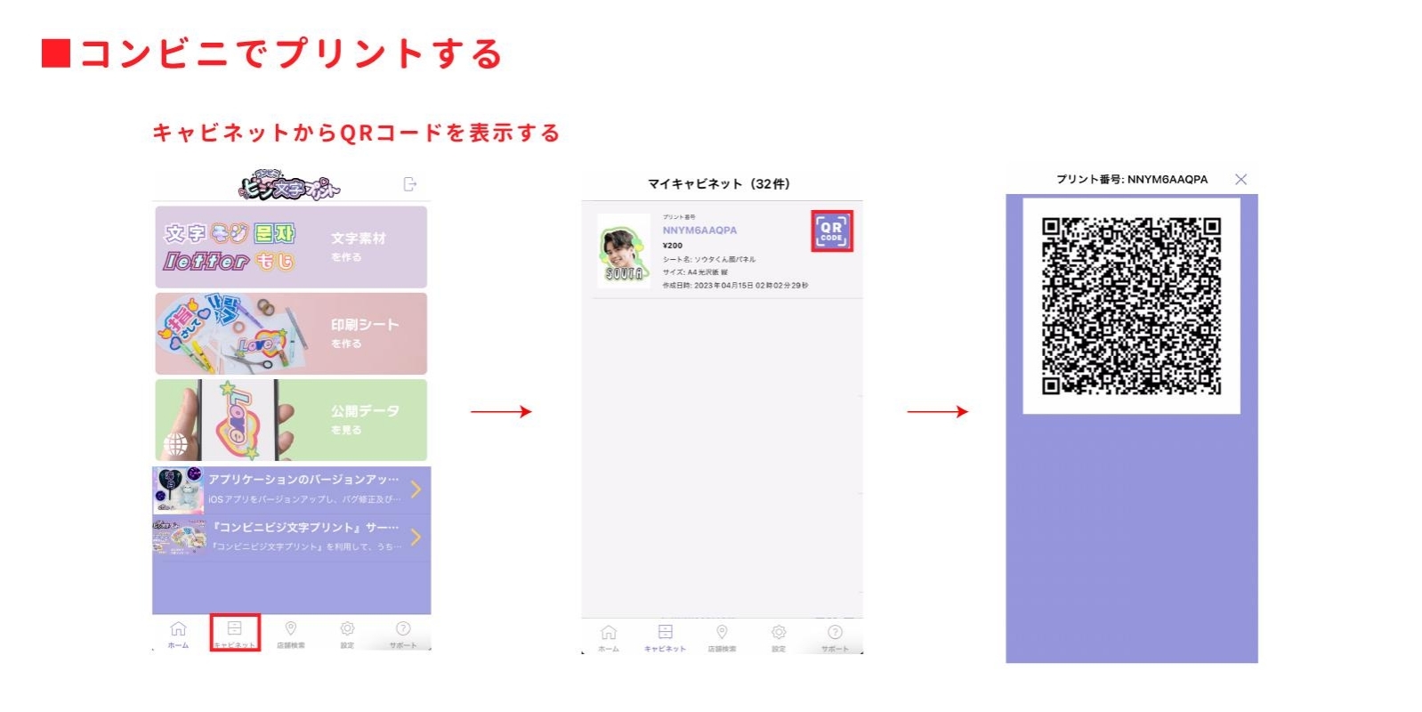 すると、QRコードがスマホに表示されるので、そのQRコードをコンビニのマルチコピー機にかざして進めていくと印刷ができます☺︎