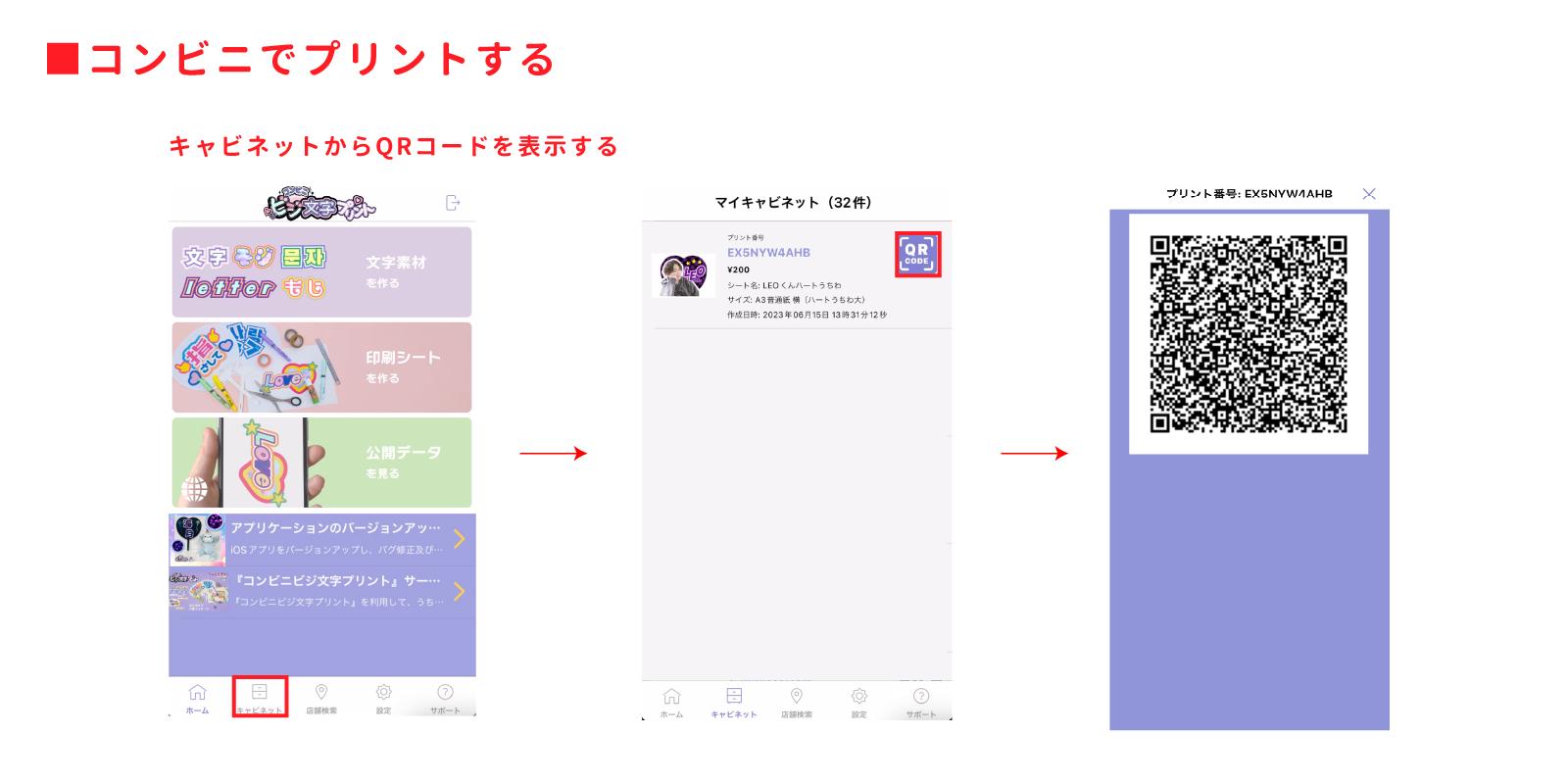 QRコードがスマホに表示されるので、そのQRコードをコンビニのマルチコピー機にかざして進めていくと印刷ができます☺
