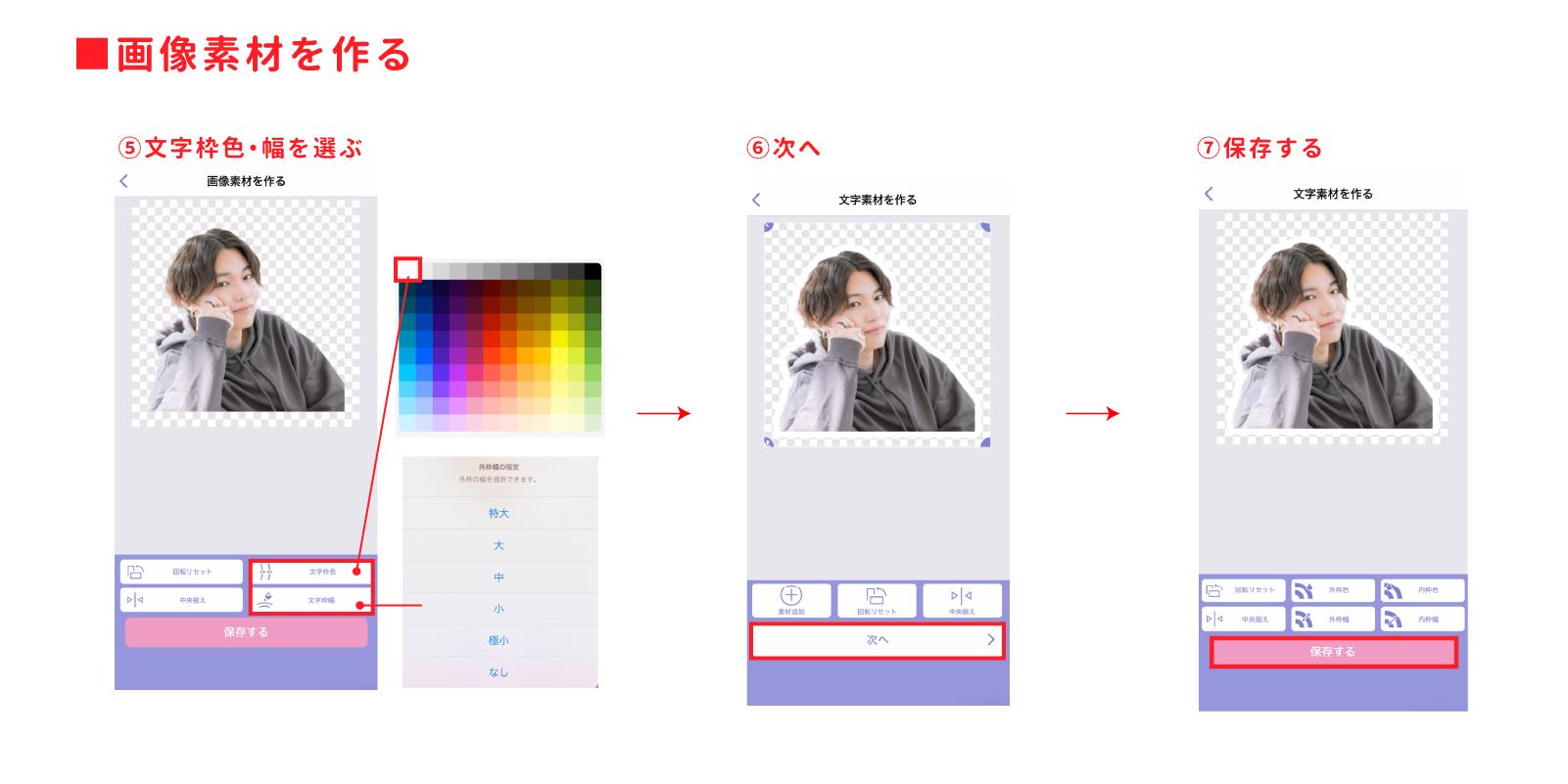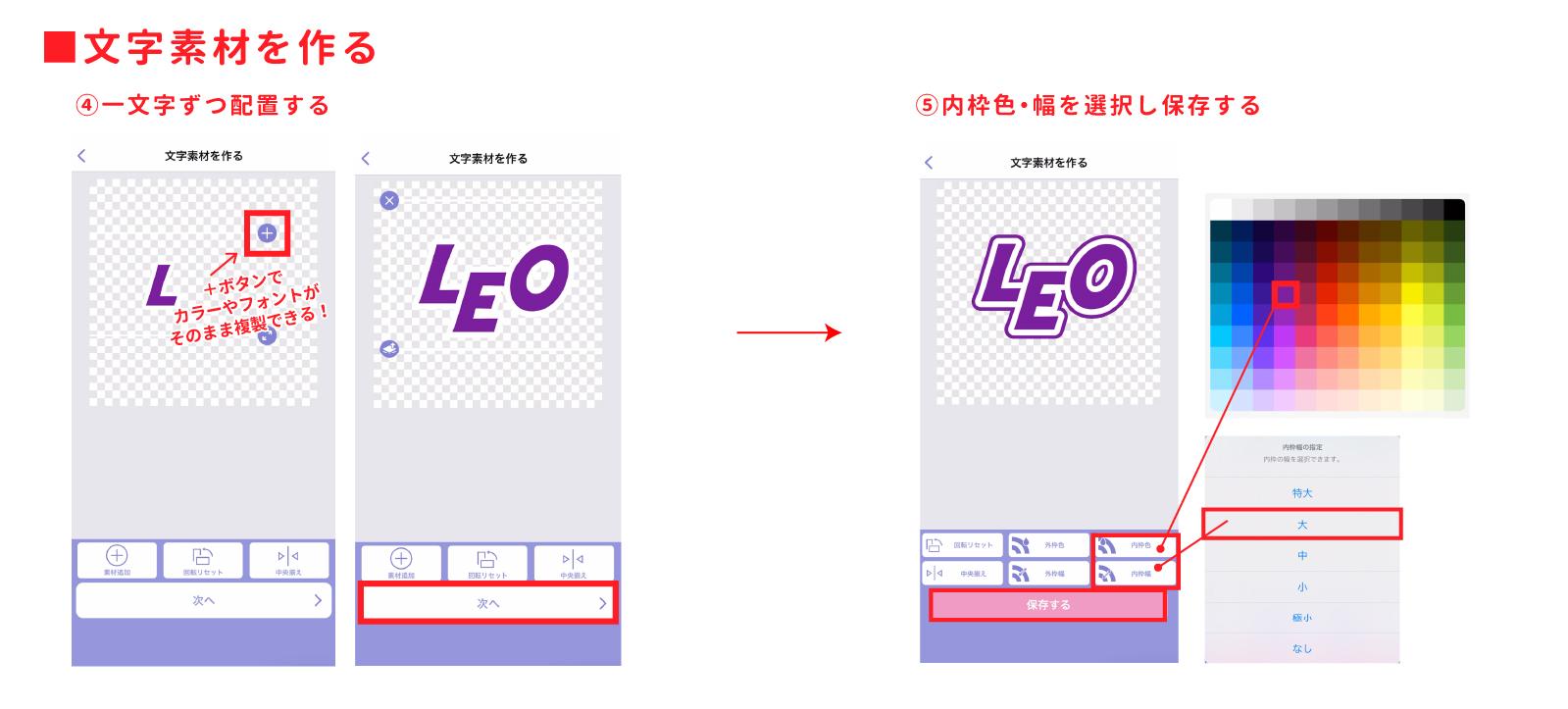 内枠を選んで保存をし、文字素材は完了です♪