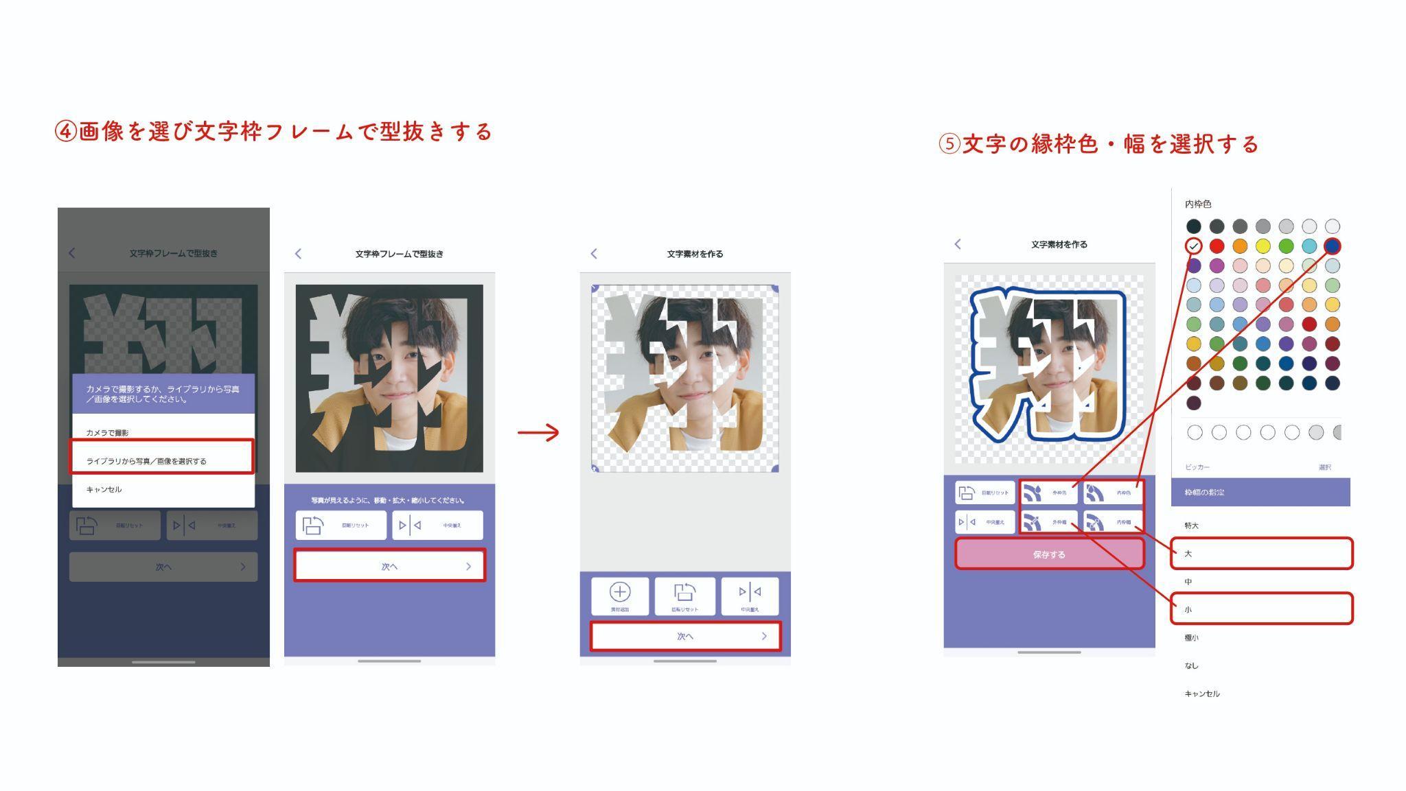 最後に、内・外枠色・枠幅を選択していき『保存する』をタップして完了です☆