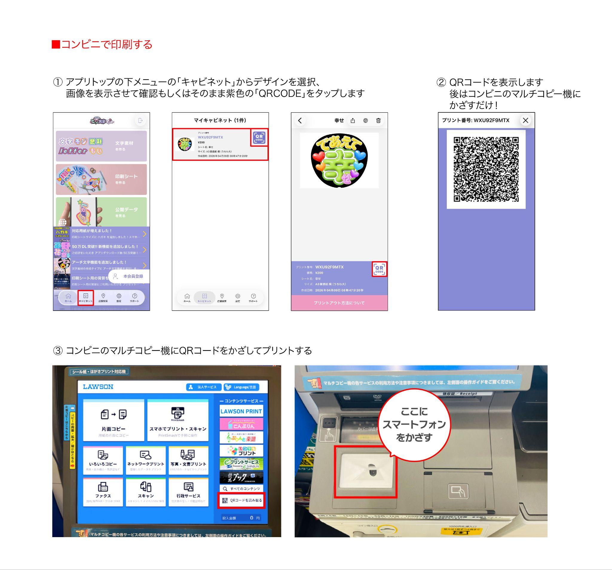 コンビニのマルチコピー機のQRコードリーダーにかざし、印刷すればOK!