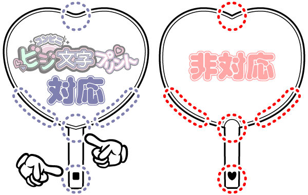 コンビニビジ文字プリントにて対応しているハートうちわの形状は