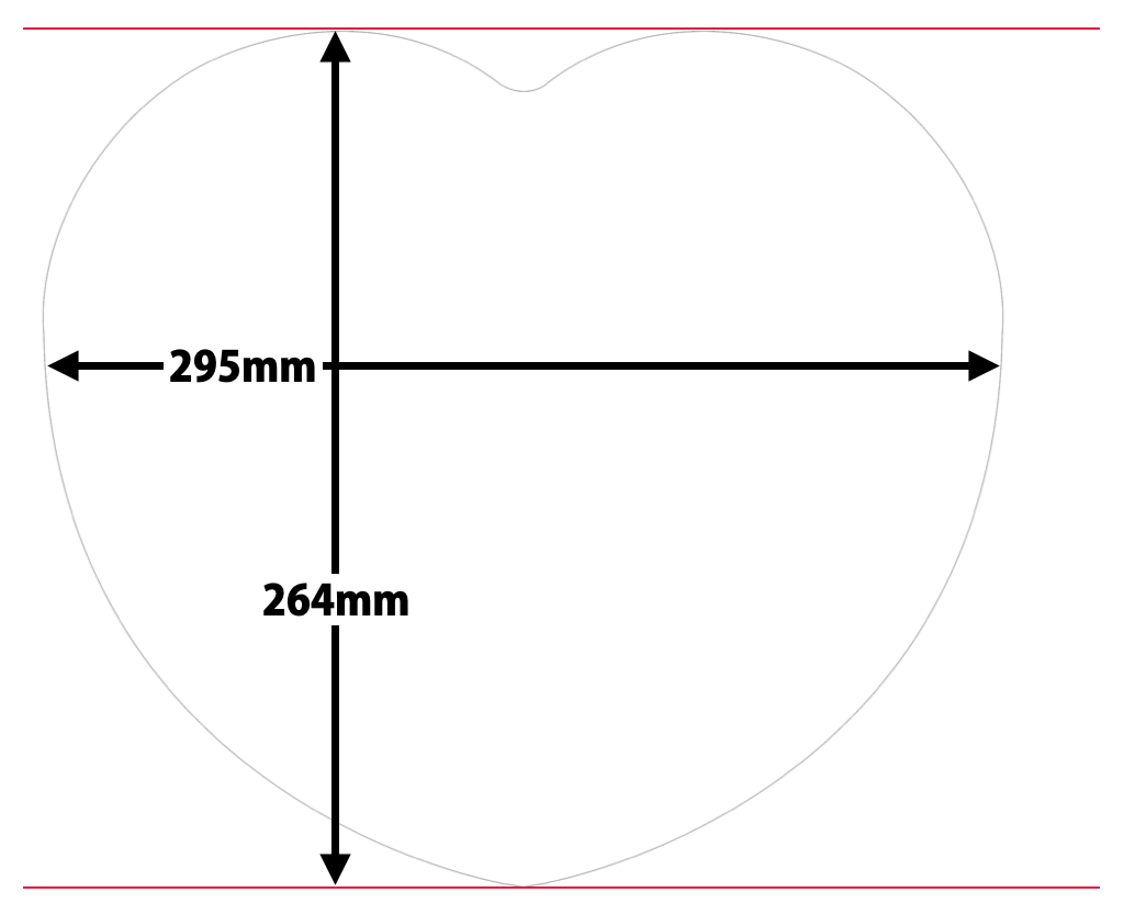 扇部が縦幅264mm,横幅295mmのハート型うちわに対応したテンプレートです。