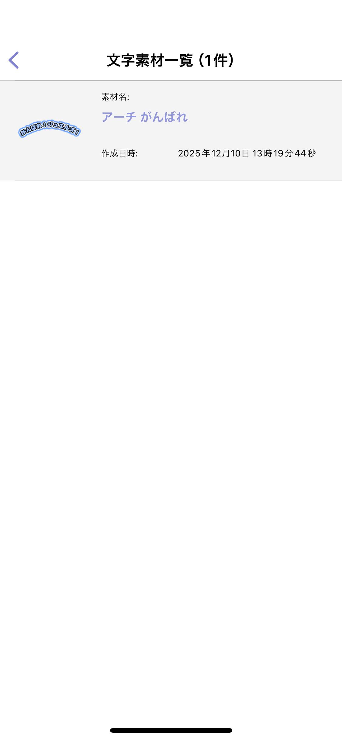 「文字素材キャビネット」画面から、保存した素材をタップして詳細を確認することが出来ます。